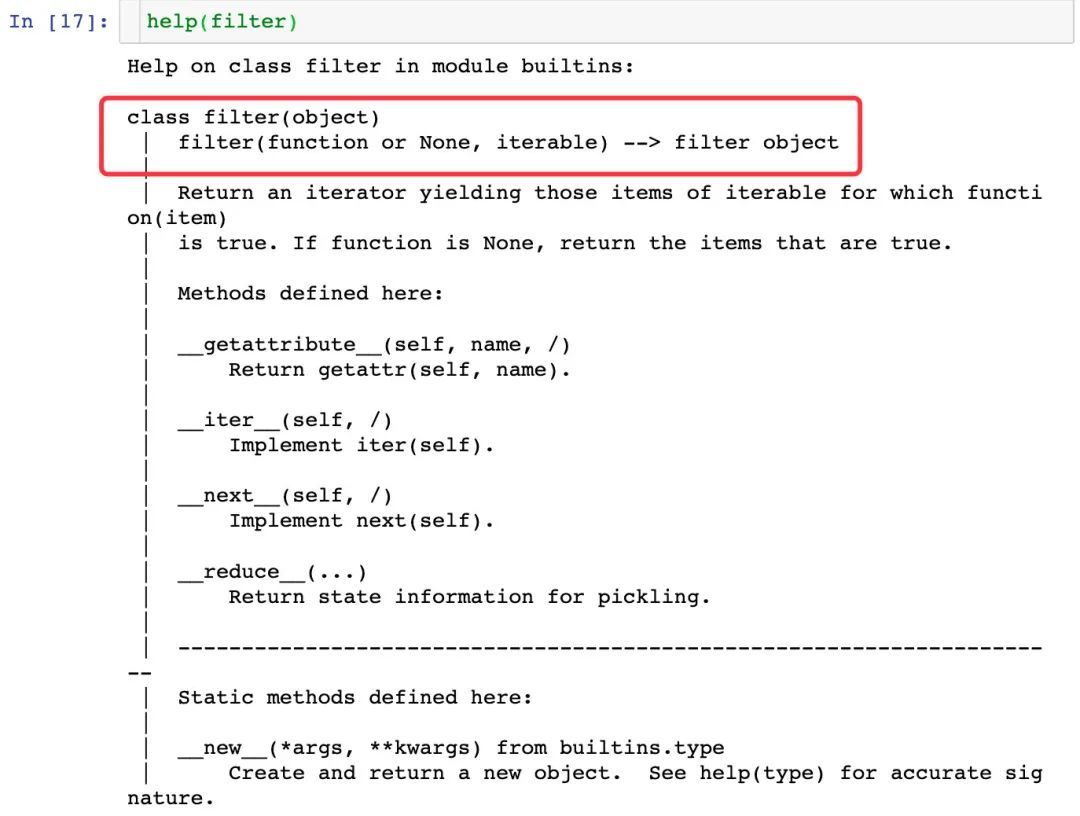 filter(function, iterable) #The former is a function, the latter is a sequence to be executed