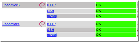 Experimental environment: install nagios3 on the ubserver5 machine, and monitor the www and mysql services on the ubserver3 and ubserver4 machines.