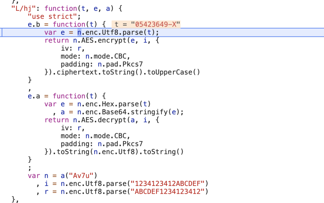 The parameter e.CorpCode here becomes ciphertext after mb, so the logic of mb can be realized