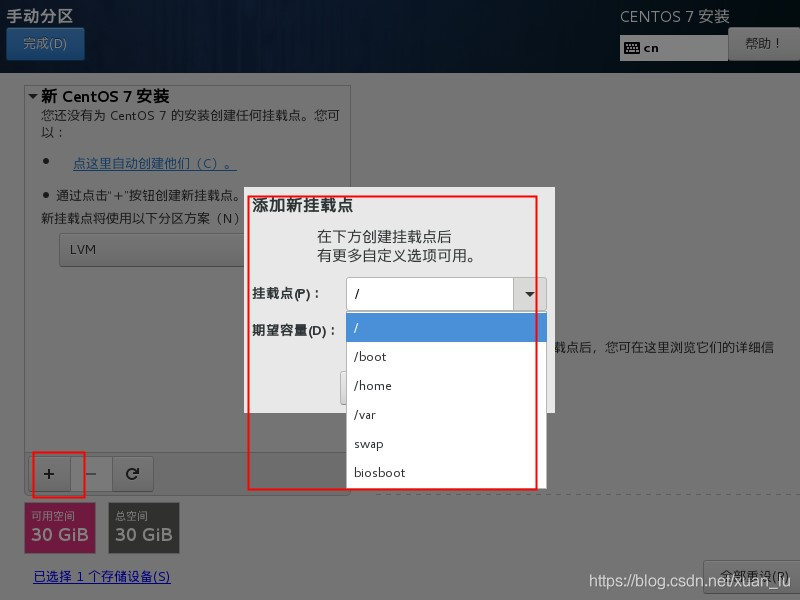 - Enter the partition page, select the + sign on the lower left side, enter to add a new mount point, here you only need to configure /boot;swap;/ three partition sizes;