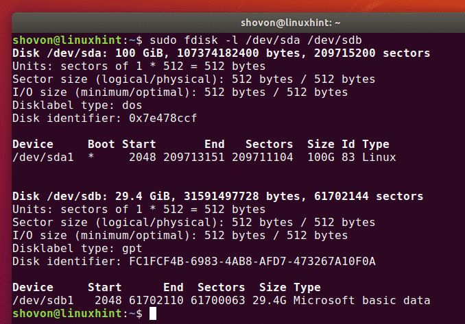 $ sudo fdisk -l / dev / sda / dev / sdb