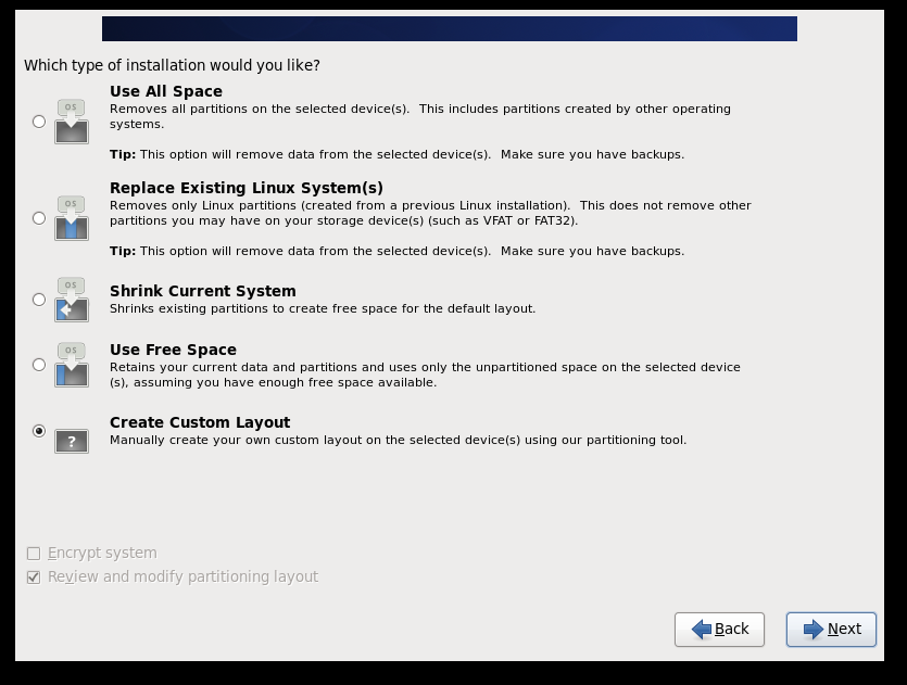 Next select a custom system partition: